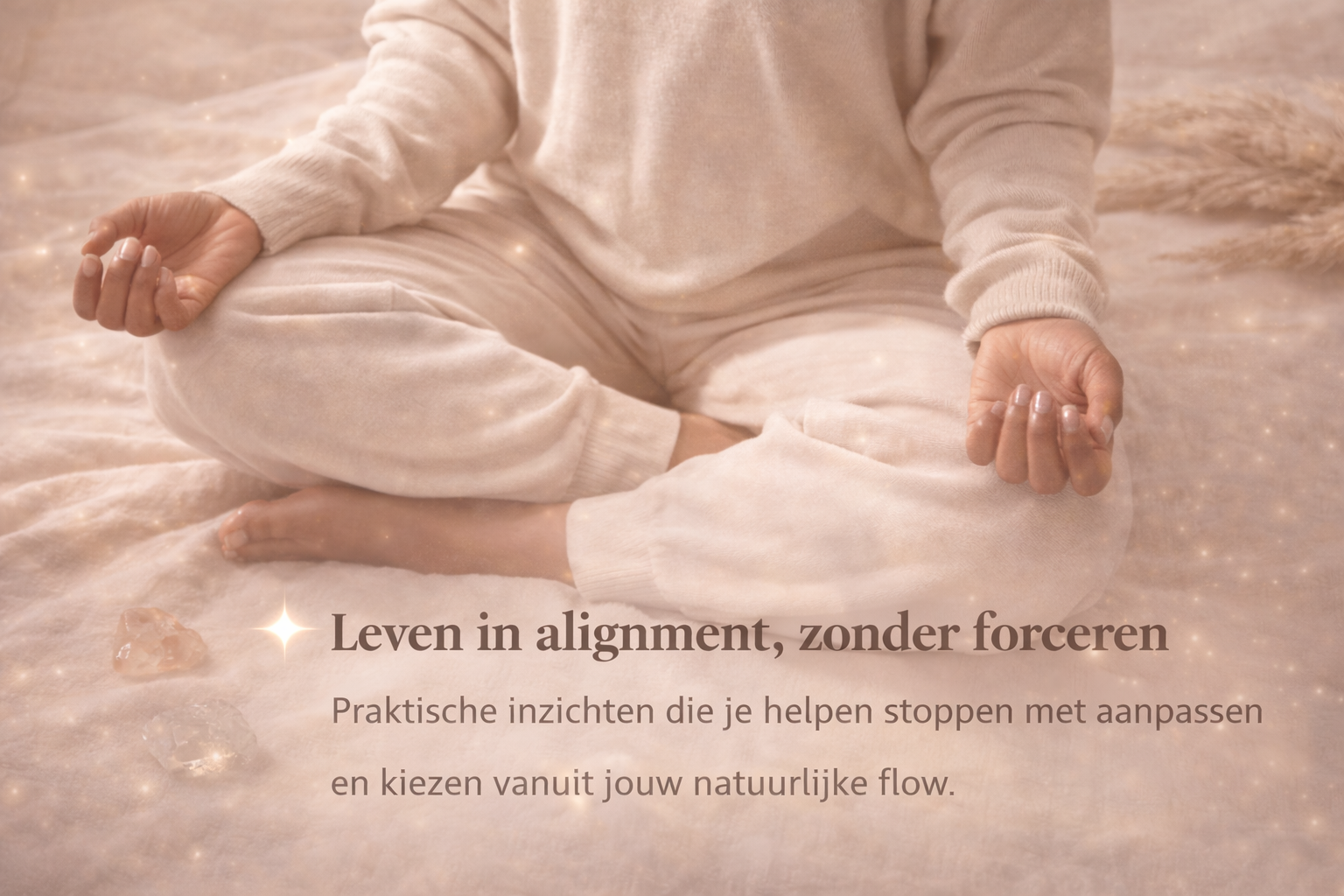 Van blijven zoeken naar de juiste strategie, methode of mindset, terwijl je diep vanbinnen voelt dat het niet zo hoort te gaan. Leven in alignment betekent niet dat alles altijd makkelijk is — maar wel dat je stopt met vechten tegen jezelf.