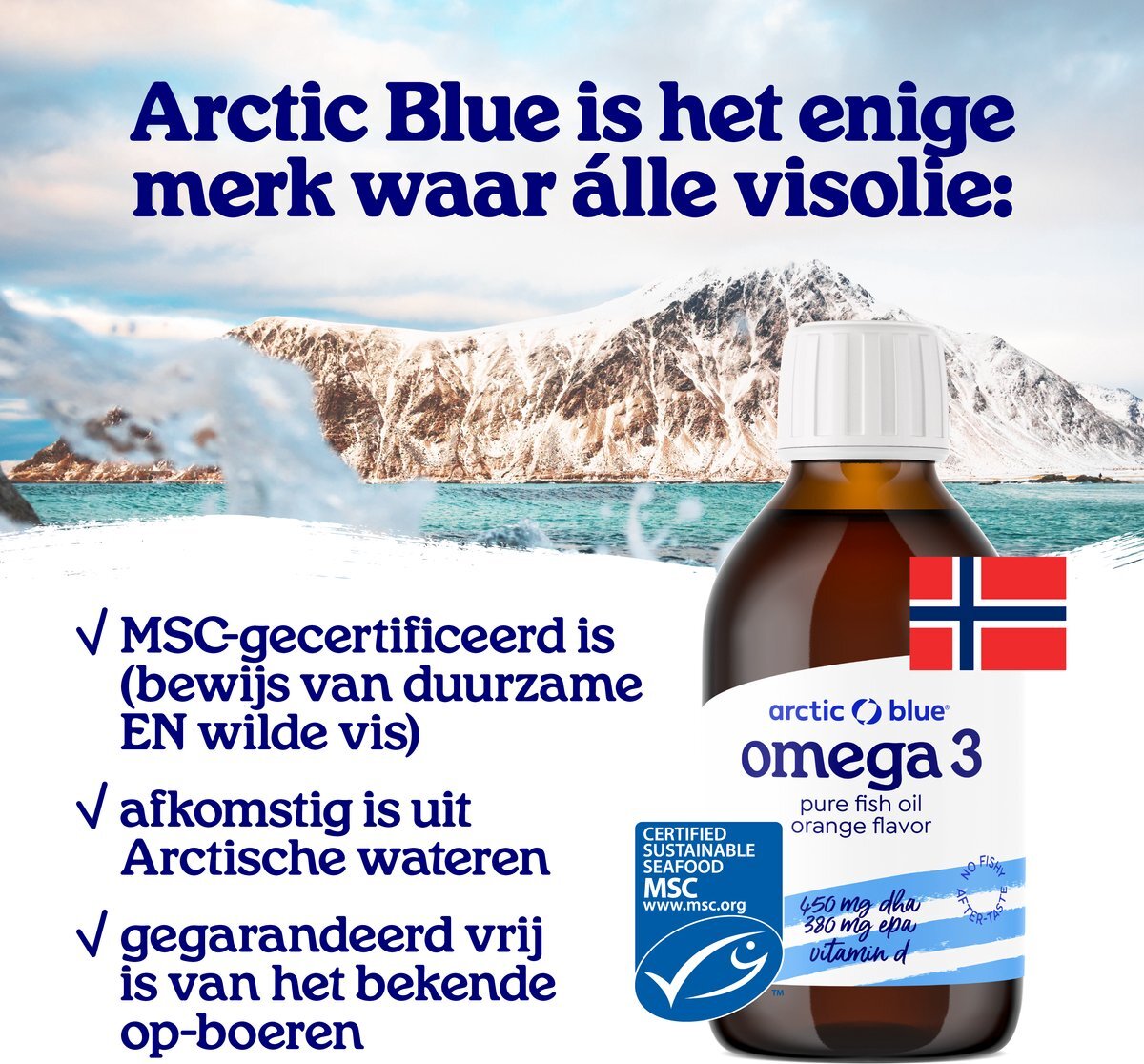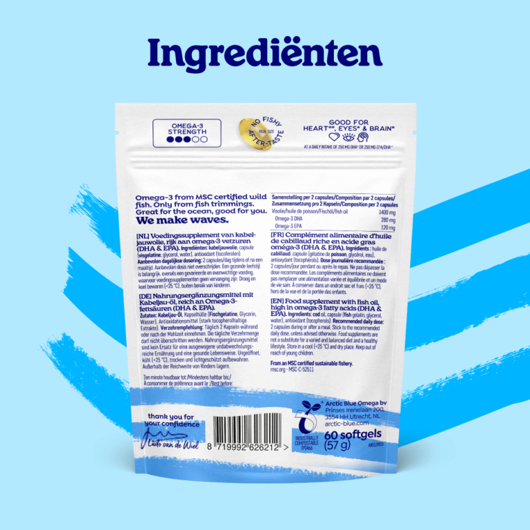 Vanzelfsprekend is de visolie die we gebruiken, zoals je van ons gewend bent, gemaakt van filet-snijresten van MSC-gecertificeerde Noorse kabeljauw.